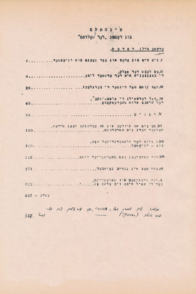 В архіві також зберігається фрагмент невідомого великого прозового твору, написаного їдишем (98 аркушів); цей рукопис потребує ретельного опрацювання перекладачами та літературознавцями.