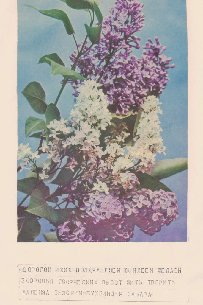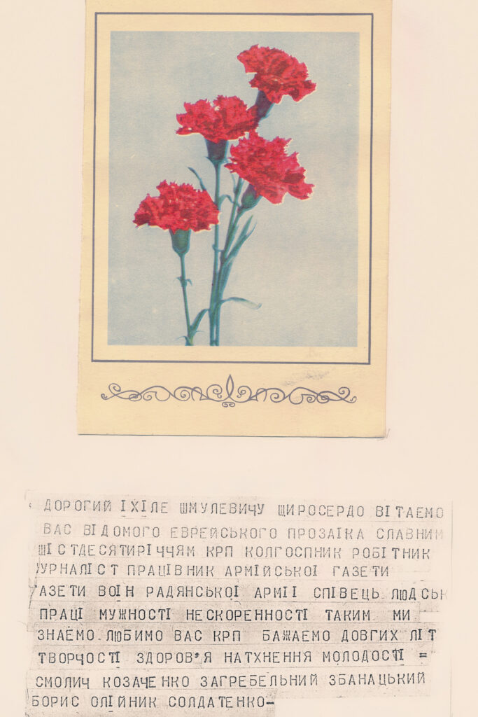 Листування. В архіві представлено близько 950 листів, листівок і телеграм за 1943–1989 рр. Чимало листів та листівок написані їдишем (близько 320), а також російською (приблизно 600) та українською (близько 30) мовами.
